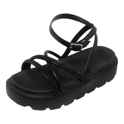 Estilo Delicado: As tiras finas e resistentes, com detalhes em tranças e aplicação de strass, conferem um toque de sofisticação ao visual. Essa sandália é perfeita para complementar looks de festa ou do dia a dia com um charme extra.