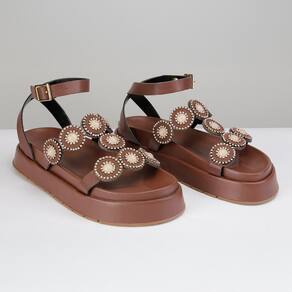 A Sandália Flatform de Pedraria é a peça perfeita para quem busca combinar conforto e glamour. Seu design inovador conta com um cabedal adornado com pedrarias circulares cravejadas, formando um desenho único que adiciona luxo e sofisticação ao calçado. O solado flatform em Micro Expandido garante leveza e conforto extra, proporcionando estabilidade para o dia a dia. Com seu acabamento impecável e a palmilha macia, esta sandália se destaca pela beleza e presença marcante, elevando qualquer look.