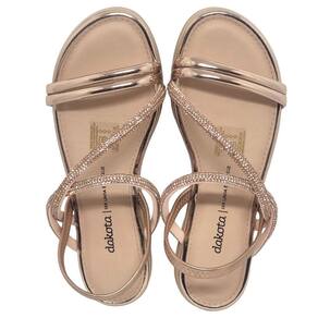 Design Elegante: Com tiras finas adornadas por strass brilhantes, esta sandália metalizada é a definição de glamour. O acabamento metalizado traz um toque moderno e sofisticado, perfeito para qualquer ocasião.