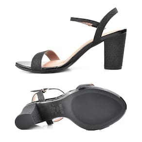 Sandália Godiva Feminina Salto Bloco Médio Glitter Preta 342872