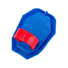 - Na parte superior um espaço para guardar os 3 discos e ainda a parte do lançador para acoplar esses discos e começar a brincadeira de ser o próprio Homem Aranha lançando.