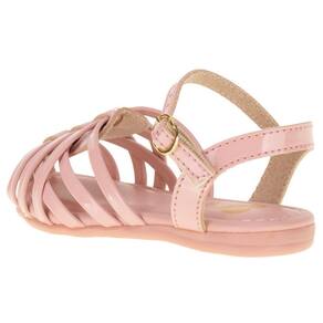 A Sandália Infantil Feminina Molekinha é confeccionada em material envernizado de alta qualidade com acabamento em costura. Este modelo contém fechamento por fivela de ajuste, palmilha em PU e solado em borracha antiderrapante