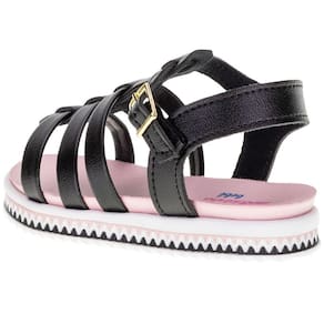 A Sandália Infantil Feminina Molekinha já tem os corações das pequenas. Confeccionada em Napa turim, com acabamento em costura e fechamento por fivela no tornozelo. A palmilha em PU acomoda os pés perfeitamente e o solado em borracha garante segurança em cada passo.