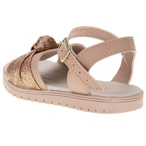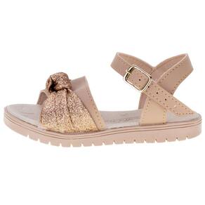 A Sandália Infantil Feminina Nayarinha é confeccionada em Napa com detalhes em glitter, acabamento em costura, fechamento por fivela de ajuste, palmilha em PU macio e solado em borracha antiderrapante.