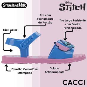 O personagem do momento em uma versão apaixonante: a sandália Stitch To Play traz um enfeite personalizado e diferente em cada um dos pés e uma sola com grafias coloridas e superdivertidas, deixando o Stitch em evidência.