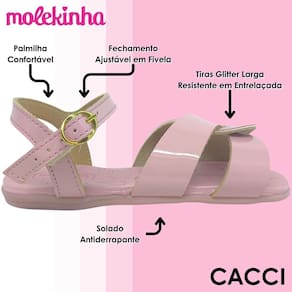 O solado antiderrapante oferece firmeza e segurança em variadas superfícies, proporcionando tranquilidade em cada movimento. Leve, confortável e cheia de personalidade, a sandália Molekinha é uma excelente escolha para compor looks encantadores e garantir bem-estar em todas as ocasiões.