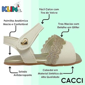 O design é enriquecido por tiras suaves com acabamento brilhante, que trazem um ar festivo e alegre, sem abrir mão da leveza. A estrutura garante firmeza ao caminhar e liberdade para os movimentos naturais, enquanto a palmilha oferece um apoio aconchegante, ideal para acompanhar a rotina das crianças com suavidade em cada passo. O ajuste prático facilita o calce e garante segurança no uso prolongado, além de estimular a autonomia dos pequenos na hora de se vestir.