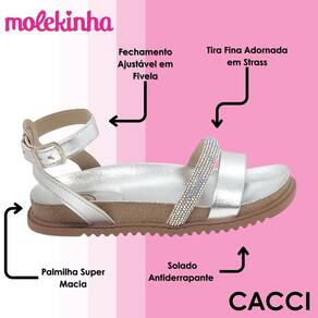 Não perca a chance de deixar os pezinhos da sua pequena ainda mais estilosos! A Sandália Molekinha é a combinação perfeita de conforto e glamour. Adquira já a sua e faça cada passo ser um momento de alegria e charme!