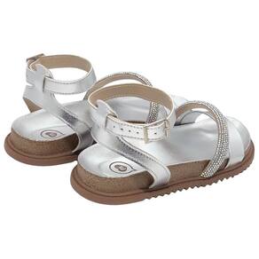 A tira fina, delicadamente adornadas com strass, elevam o visual da sandália, permitindo que as pequenas brilhem em qualquer evento.
