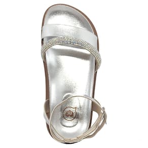 A tira fina, delicadamente adornadas com strass, elevam o visual da sandália, permitindo que as pequenas brilhem em qualquer evento.