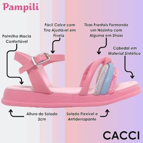Sandália infantil feminina em sintético rosa, tiras frontais formando um nózinho e também duas tiras de strass, delicada e confortável para todos os momentos. Sandália com palmilha anatômica, proporcionando conforto e segurança aos pezinhos. Solado com pequena elevação em micro expandido, material leve com muita aderência e estabilidade, além da flexibilidade, resistência térmica e alto desempenho antiderrapante. Sandália infantil com fechamento através de fivela easy, muito prática para a autonomia das meninas ao calçar! A sandália vem com escrita em braile nas laterais, mostrando o lado correto para as meninas cegas ou com baixa visão.
