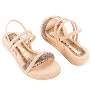 O modelo possui tiras finas e macias que envolvem os pés, proporcionando um ajuste perfeito e confortável. Já o calce fácil, graças à tira maleável e sem fechamentos que envolve o calcanhar, torna a sandália ainda mais prática. Ainda conta com sola flatform, com 2 cm de altura, que adiciona um toque de estilo e garante um caminhar mais seguro. O destaque fica por conta da tira frontal repleta de brilhos, que traze um toque de sofisticação e elegância para os looks.
