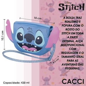 A bolsa traz realismo e fofura com o rosto do Stitch em toda a parte externa, alça multifuncional com regulagem e o tamanho ideal para as aventuras das pequenas. Para completa esse combo, a clássica Flox vem com a palmilha estampada com o rosto e elementos reconhecidos do personagem, além do fechamento autocolante e efeito bicolor.