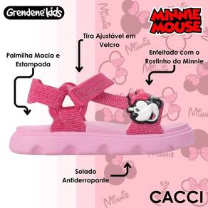 A icônica Minnie Mouse é destaque na parte frontal, trazendo alegria e personalidade a cada passo.