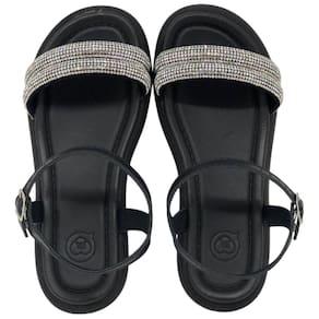 Praticidade no calce: fecho ajustável que facilita o uso, oferecendo segurança e autonomia para as pequenas calçarem sozinhas.