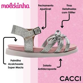 Sandalia Infantil Menina Conforto Moderno Glitter Molekinha - 25 - Prata