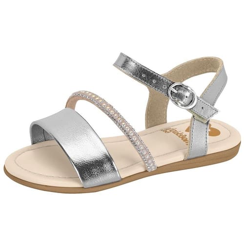 Sandália Infantil Menina Conforto Perola Moderna Molekinha - Prata - 19