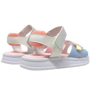 Sandália infantil feminina em sintético branco e colorido, um modelo moderno e atual para as bebês passearem com muito estilo e conforto! Palmilha anatômica de EVA com espuma para mais conforto ao caminhar. A sandália de bebê tem solado emborrachado com tecnologia do TR Eco que leva em sua composição 20% de matérias primas vindas de fontes renováveis, entregando uma performance flexível e antiderrapante, dando segurança aos primeiros passinhos. Sandália calce fácil com tira autocolante, trazendo praticidade para a mamãe, trabalhando a autonomia da menina e podendo regular em cada pezinho. Ainda pensando nisso, a sandália possuí escrita em braile no solado, indicando o lado direito e esquerdo para as meninas cegas ou com baixa visão!