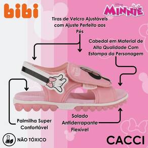 Cabedal estiloso: material de alta qualidade com estampa da Minnie, trazendo um toque divertido e especial.