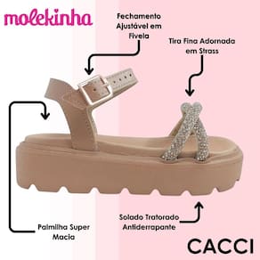 Deixe os dias ainda mais alegres e estilosos com a Sandália Molekinha! Ideal para momentos inesquecíveis e cheios de charme, é uma escolha certa para complementar o visual das meninas com muita diversão e conforto.