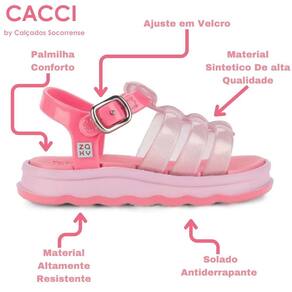 O design moderno e funcional desta sandália destaca-se pelo seu conforto superior. As tiras ajustáveis garantem um ajuste seguro e personalizado, permitindo que as meninas mantenham seus pés firmes durante todas as suas atividades. A palmilha macia e a sola flexível proporcionam um suporte adequado, permitindo que as crianças explorem o mundo ao seu redor com total liberdade de movimento.