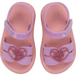 Sandália Baby Zaxynina Dayli Love com detalhes de coração e glitter, design superestiloso para os pezinhos da sua pequena. Confortável, leve e cheia de charme.