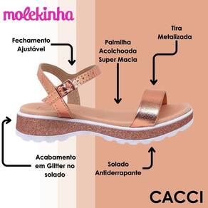 Com a Sandália Molekinha, as meninas estarão sempre prontas para brilhar, com muito conforto e estilo. Um modelo que une praticidade e charme, perfeito para transformar qualquer momento em uma ocasião especial!