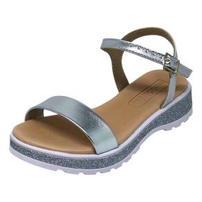 Estilo delicado e moderno: tira Metalizada encantadora e acabamento sofisticado em glitter no solado, tornando a sandália ideal para compor looks cheios de charme.