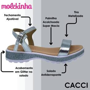 Com a Sandália Molekinha, as meninas estarão sempre prontas para brilhar, com muito conforto e estilo. Um modelo que une praticidade e charme, perfeito para transformar qualquer momento em uma ocasião especial!