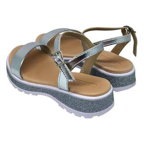 Estilo delicado e moderno: tira Metalizada encantadora e acabamento sofisticado em glitter no solado, tornando a sandália ideal para compor looks cheios de charme.
