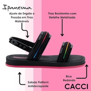 A Sandália Infantil Ipanema Kids Baby Glow foi pensada para unir praticidade, estilo e segurança em um só calçado. Com design moderno e delicado, ela é a escolha certa para acompanhar os momentos de diversão e as descobertas do dia a dia das meninas. Seu diferencial está nas tiras resistentes com detalhe metalizado, que trazem um charme especial e fazem a sandália brilhar em qualquer ocasião. O ajuste de engate em tiras maleáveis garante praticidade na hora de calçar, além de firmeza e conforto durante o uso. O solado flatform antiderrapante oferece mais segurança para que sua pequena possa brincar, correr e explorar sem preocupações. O bico redondo proporciona um ajuste natural e confortável, respeitando o movimento dos pezinhos em crescimento. Cheia de estilo e super versátil, a Ipanema Kids Baby Glow combina perfeitamente com diferentes looks, deixando cada produção ainda mais alegre e moderna. É a sandália ideal para transformar o dia a dia em momentos cheios de conforto, segurança e diversão
