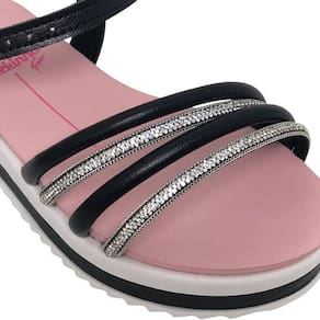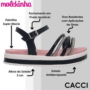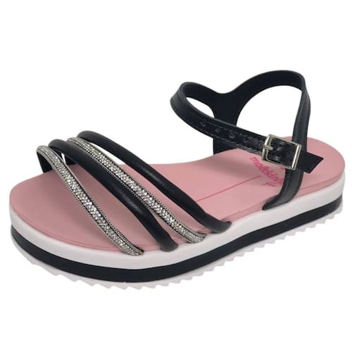 A Sandália Flatofrm Molekinha Menina possui cabedal em material sintético de alta qualidade. Seu formato apresenta bico arredondado, ideal para acomodar os pés das crianças com conforto. O fechamento é feito por ajuste prático, garantindo um ajuste firme e seguro, enquanto a abertura facilita o calce. Com construção ergonômica, a sandália oferece palmilha macia e promovendo bem-estar durante o uso. Suas tiras resistentes com aplicações de strass trazendo todo o charme ao calçado. Seu design leve e maleável permite liberdade nos movimentos, e os pequenos detalhes em costura nas laterais agregam estilo e delicadeza ao visual.