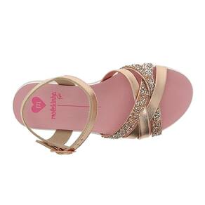 A palmilha anatômica se ajusta ao formato dos pés, oferecendo conforto durante todo o uso e garantindo bem-estar em cada passo. As tiras resistentes possuem acabamento refinado e aplicação de glitter, que adicionam um brilho discreto e sofisticado, valorizando ainda mais o modelo. O fechamento ajustável no tornozelo proporciona encaixe perfeito e segurança ao caminhar.