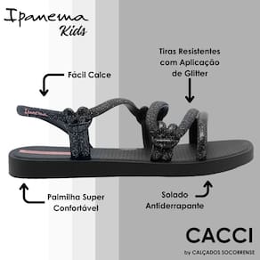 Conforto sem Igual: Desenvolvida pensando no conforto dos pezinhos delicados, a Ipanema Kids garante uma experiência de uso suave, permitindo que as crianças aproveitem cada momento com total conforto.
