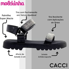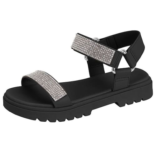 Sandália Infantil Menina Moderna Casual Strass Molekinha - 36 - Preto