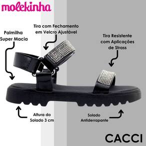 Sandália Infantil Menina Moderna Casual Strass Molekinha - Preto - 26