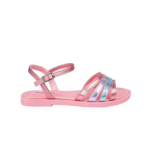 * Cabedal confeccionado em sintético metalizado;* Fechamento e ajuste por fivela;* Solado emborrachado com frisos antiderrapantes;* Medida do solado: 1 centímetros;* Palmilha fixa e macia;* Bico redondo.