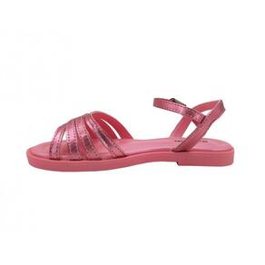 * Cabedal confeccionado em sintético metalizado;* Fechamento e ajuste por fivela;* Solado emborrachado com frisos antiderrapantes;* Medida do solado: 1 centímetros;* Palmilha fixa e macia;* Bico redondo.