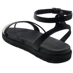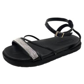 As tiras frontais, além de resistentes, vêm com uma aplicação de strass que adiciona brilho e sofisticação ao calçado. Elas não só garantem firmeza, mas também deixam a sandália ainda mais estilosa e cheia de personalidade.