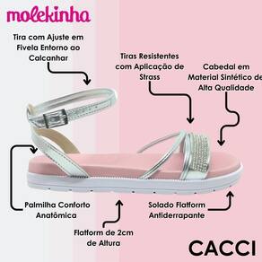 A tira de amarração ajustável com fivela no calcanhar oferece praticidade e um ajuste personalizado, garantindo que a sandália fique firme e confortável nos pés. Perfeita para acompanhar a correria do dia a dia das crianças, sem perder o estilo.