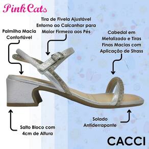 A Sandália Infantil Feminina Pink Cats é perfeita para as pequenas que sonham em brilhar como verdadeiras princesas! Com um design delicado e sofisticado, ela traz o charme dos brilhos em strass e o conforto ideal para os primeiros passinhos no salto.
