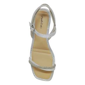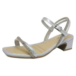 Encanto e Sofisticação – Cabedal metalizado com tiras finas macias e aplicação de strass, adicionando um toque de glamour ao look.