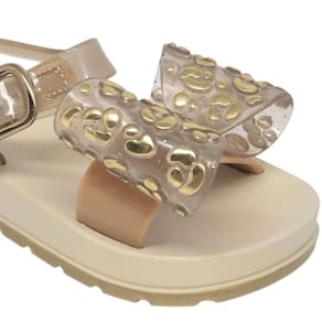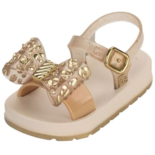 Uma sandália arrumadinha que transforma o look das pequenas Zaxylovers! Com detalhes glamourosos e um maxi laço clássico em animal print volumétrico, essa peça é a cara da tendência atual no mercado infantil. O toque final fica por conta dos efeitos de glitter e metalização, que adicionam delicadeza e brilho ao visual."