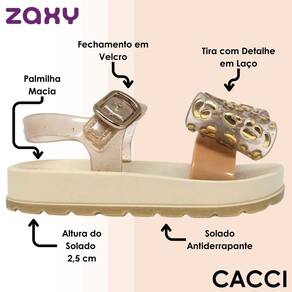 Possui fechamento por tira autocolante facilitando no calce, seu solado é antiderrapante de altura de 2,5 cm de altura ele garante conforto e estabilidade aos passos. Sandália perfeita para diversas ocasiões, seja uma festinha, um passeio e até mesmo para a escolinha.