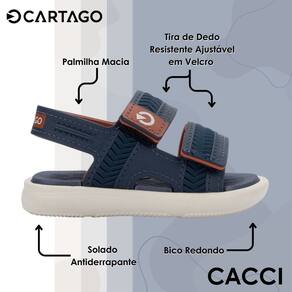 Com bico redondo e acabamento reforçado, o modelo alia resistência e flexibilidade, proporcionando um caminhar leve e natural. É a sandália perfeita para acompanhar os momentos de lazer, brincadeiras e passeios com todo o conforto e estilo característicos da linha Cartago.