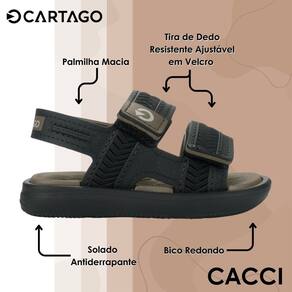Com bico redondo e acabamento reforçado, o modelo alia resistência e flexibilidade, proporcionando um caminhar leve e natural. É a sandália perfeita para acompanhar os momentos de lazer, brincadeiras e passeios com todo o conforto e estilo característicos da linha Cartago.