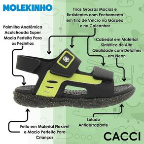 Sandália Infantil Menino Anatômica Neon Conforto Molekinho - 21 - Preto