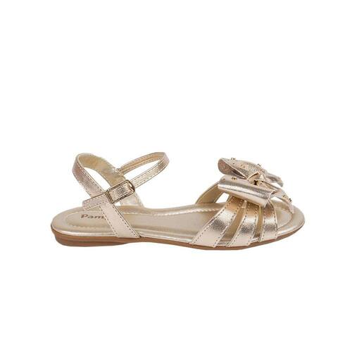 * Cabedal confeccionado em sintético metalizado, com tachinhas no laço;* Fechamento e ajuste por fivela;* Solado emborrachado com frisos antiderrapantes;* Medida do solado: 1 centímetros;* Palmilha fixa e macia;* Bico redondo.