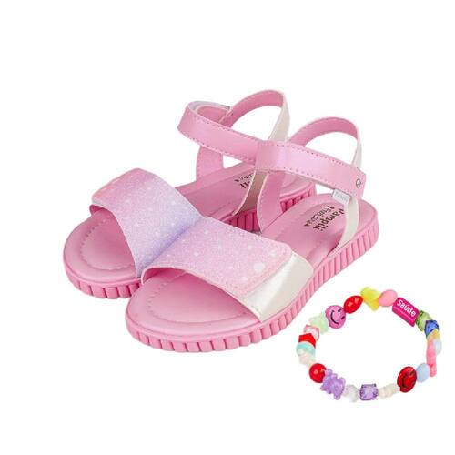 Sandália infantil rosa bale com estampa exclusiva em glitter e tacha com brilho na tira de fechamento. A sandália acompanha um mimo que as meninas vão amar! Sandália estilo papete com palmilha Feet Care que possui um sistema avançado de fofura. Sandália infantil com calce fácil em fechamento por tiras frontal e tornozelo, abre por completo dando autonomia para as meninas. Sandália feminina com solado emborrachado que possui aderência com o chão, proporcionando flexibilidade, menor desgaste e maior resistência térmica.