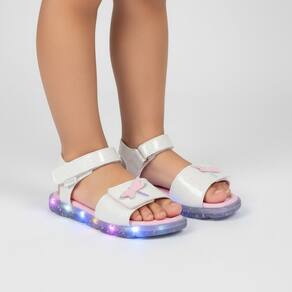 Sandália Infantil Pampili LED Borboleta Glitter: conforto e brilho para os pés das pequenas. Com design delicado em glitter branco e detalhes em rosa, essa sandália encanta pelo charme da borboleta 3D na tira frontal. A tecnologia LED na sola garante um toque divertido e luminoso a cada passo, despertando sorrisos e diversão.